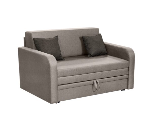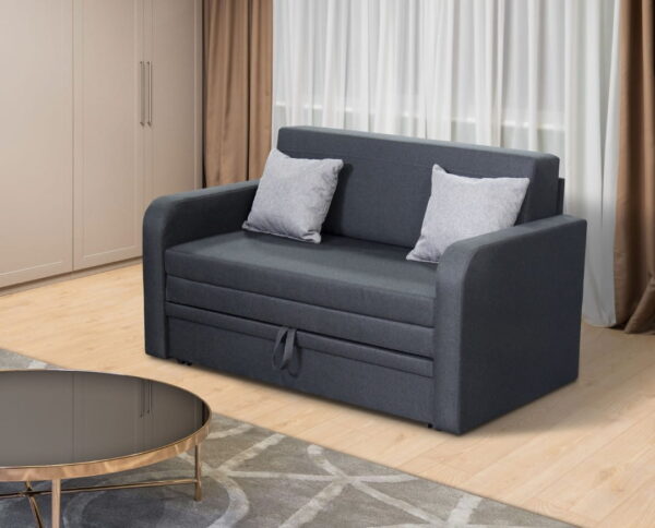 Dvosed Sorento je kompaktan i praktičan komad nameštaja, idealan za manje prostore poput garsonjera, soba za goste ili dečjih soba. Sa širinom od samo 141 cm, lako se uklapa u ograničene prostore, a za svega nekoliko sekundi pretvara se u udoban ležaj dimenzija 190×120 cm.