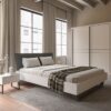 Krevet Dream je idealan izbor za savremene spavaće sobe koje kombinuju funkcionalnost i modernu estetiku. Njegov prepoznatljiv dizajn sa crnim metalnim nogarima u kontrastu sa toplim drvetom ili čistim belim dekorom čini ga centralnim komadom svake spavaće sobe. Naslon je dodatno naglašen tamnosivim tonom koji doprinosi elegantnom i sofisticiranom izgledu.