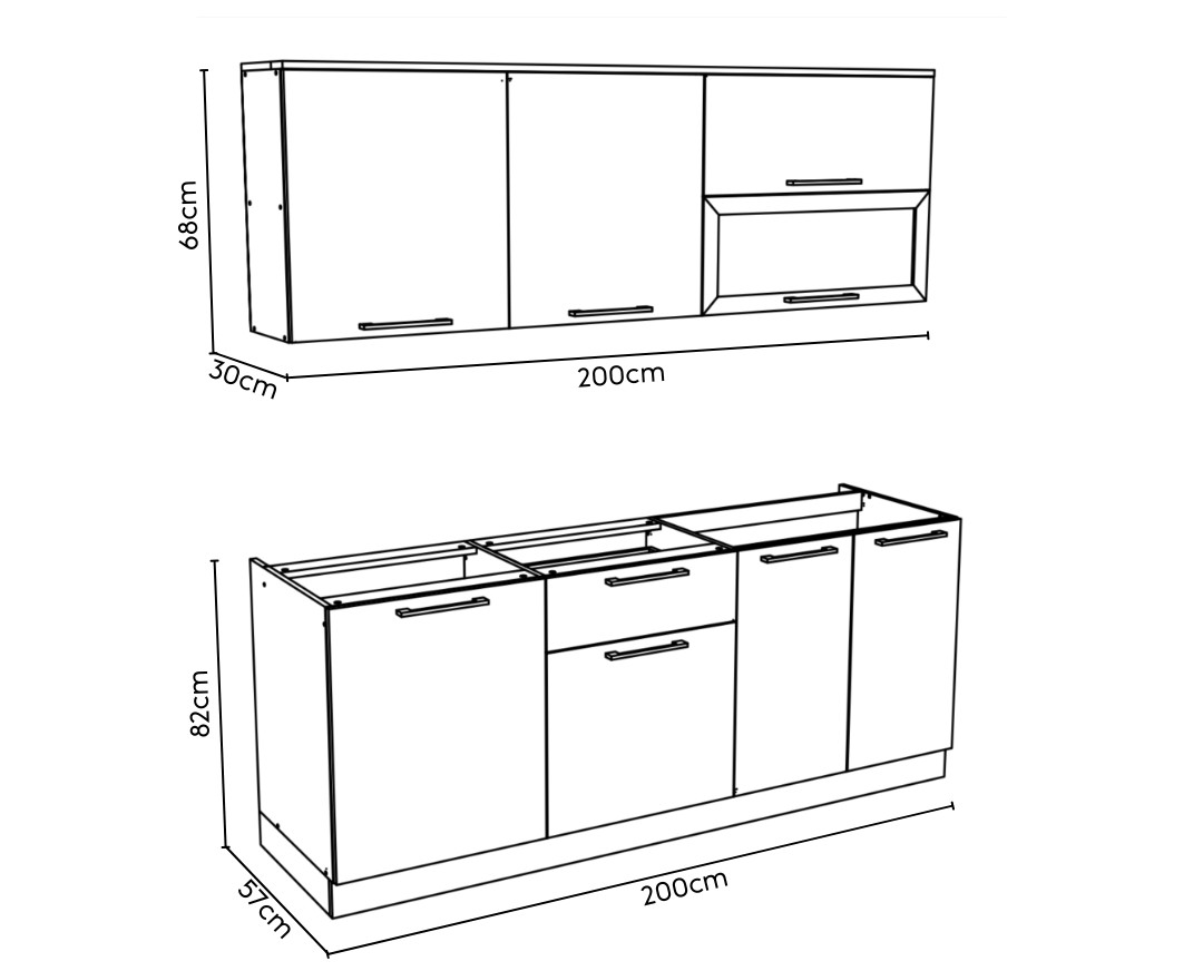 Dodatak: | Donji elementi: 200x57x82 cm, Viseći elementi: 200x30x68 cm |