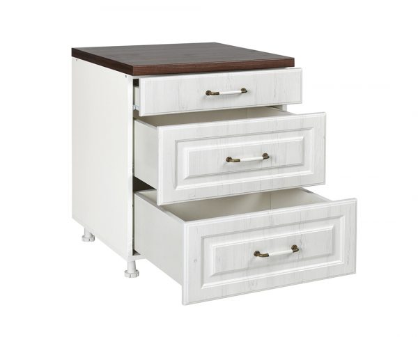 Prava kombinacija retro stila i vrhunske moderne tehnologije. Donji kuhinjski element IN D 80 3F B RUSTIK izrađen je od najkvalitetnijeg medijapana (MDF-a), sa fiokama na metalnim klizačima, a svojim dizajnom nikoga ne ostavlja ravnodušnim. Kuhinjski element IN D 80 3F B RUSTIK se sastoji od 3 fioke različitih dubina tako da se osim escajga u njih može odlagati i posuđe malih i srednjih dimenzija. **NAPOMENA** Svi elementi iz programa Kuhinja IN RUSTIK projektovani su tako da se mogu kombinovati u postavkama kuhinja sa bilo kojim drugim elementom Kuhinja IN RUSTIK.