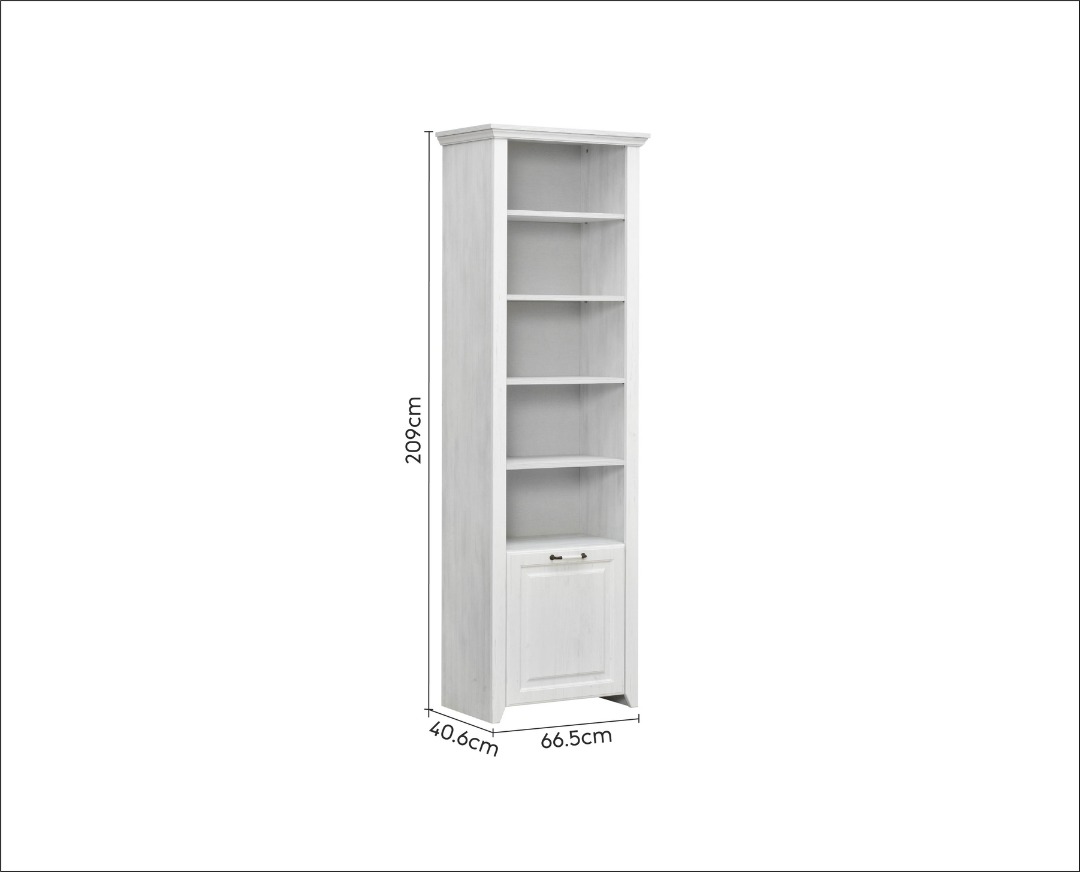Rustik Biblioteka je kreirana s ciljem da objedini željene estetske standarde s mogućnostima višestruke primene u enterijeru. Pažljivo osmišljen i dobro podeljen prostor omogućava vam da je lako koristite u različitim ambijentima poput dnevnog boravka, trpezarije ili kancelarije. Praktična biblioteka dimenzija 66,5×40,6×209 cm poseduje 5 polica koje vam omogućavaju da organizujete i izložite svoje knjige, dekorativne predmete i druge dragocenosti. Sa rustičnim i jednostavnim dizajnom, Rustik Biblioteka zadovoljava sve zahteve savremenog enterijera.