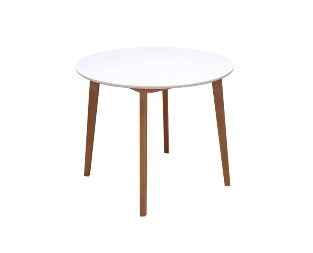 Trpezarijski sto Max S idealan je izbor za manje trpezarije, kuhinje ili prostore gde je važna funkcionalnost uz moderan izgled. Okrugla ploča prečnika 90 cm izrađena je od kvalitetnog medijapana debljine 18 mm, dok su stabilni nogari izrađeni od punog drveta, što obezbeđuje dugotrajnost i čvrstoću.