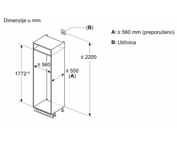 - Ugradne dimenzije (V x Š x D): 177,5 x 56,2 x 55 cm